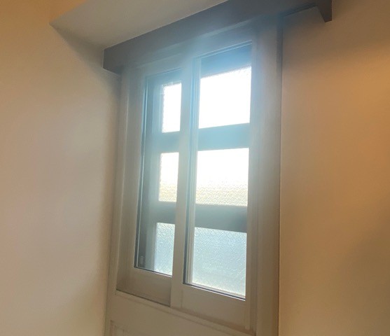 今回は、オーニング窓の下にFIX窓(はめ殺し窓)がある段窓(上下に分かれている窓)に内窓プラストを設置しましたが、オーニング窓とFIX窓と同じ大きさに合わせて、上が内窓プラストNT型(引き違いタイプ)、下が内窓プラストFKD型(FIXタイプ)で納めました。